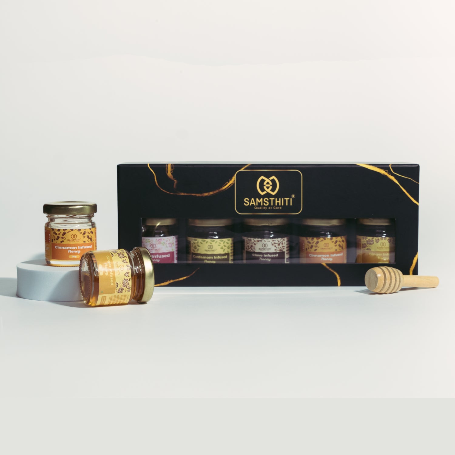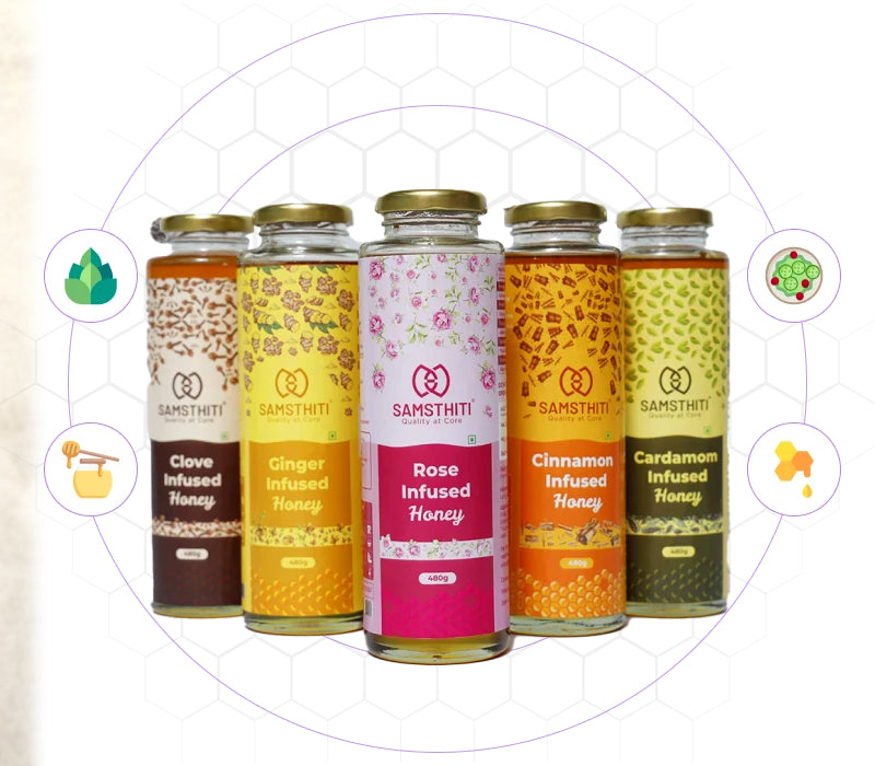 Our range of organic-infused honey is a testament to the ancient wisdom of holistic medicine, providing a delightful and effective way to improve overall health for everyone. Our organic-infused honey is crafted for health-conscious individuals seeking a natural, nutrient-rich way to boost immunity, enhance digestion, and support overall well-being. Whether you need daily nourishment, a revitalizing wellness boost, or a flavorful superfood to elevate your favorite meals, Samsthiti honey is your perfect companion.